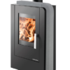 Dieser Kaminofen ist in der eleganten Farbe perl-anthrazit mit dem Stein Quarzit grau erhältlich.