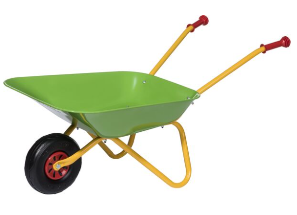 Outdoor active Schubkarre Metal grün/gelb ist eine hochwertige Schubkarre mit Metallmulde, Kunststoffgriffen und Hartplastikbereifung.